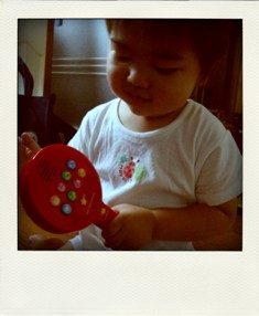 タイコのおもちゃがついてて、音楽も鳴るし叩くとタイコの音がするの!
