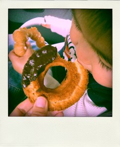 途中でミスドを買って行きました。100円セールだったの。