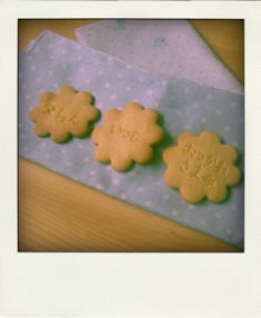 レーステープとリボンを貼って、オリジナルのはんこをペタリ。